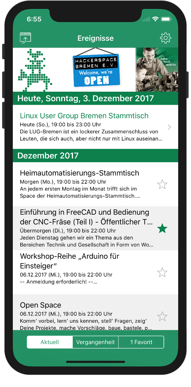 Eine App für mobile iOS Geräte, die über das aktuelle Programm im Hackerspace Bremen informiert.