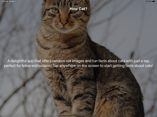 - Tap anywhere on the screen to get a new fact of cats with image with randomized fonts that supports dynamic types