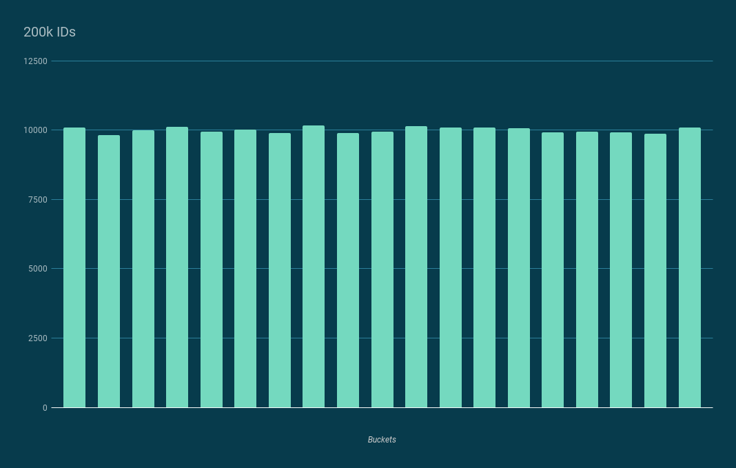 a histogram analysis is done on every batch of tests to ensure a fair and random distribution across the whole entropy range. Any bias found during the analysis would increase the chances of ID collision and cause the tests to fail automatically.