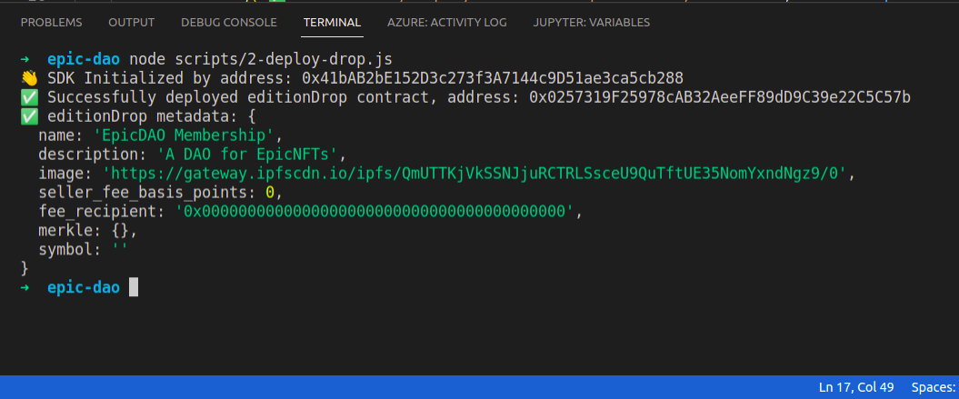 Okay, now we're going to actually deploy metadata associated with our membership NFT. We haven't done that yet. All we did so far was create the ERC-1155 contract and add some basic metadata. We haven't actually set up our membership NFTs, let's do that!