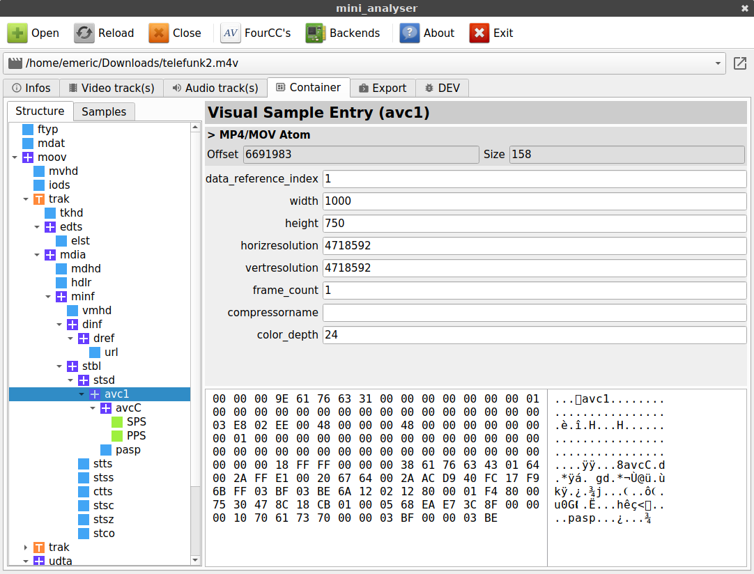 mini_analyser is a software designed to help you extract a maximum of informations and metadata from multimedia files. It can also map container's internal structure and let you visualize it.