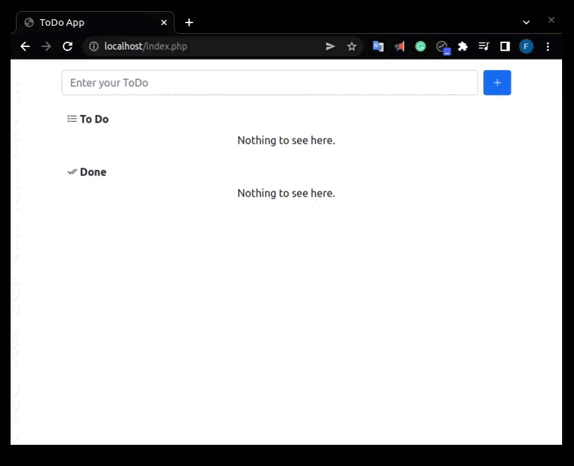 To Do Web App desenvolvido com PHP, JSON e Bootstrap Para executar o projeto é necessário ter o Docker e Docker compose instalado. Basta executar o seguite comando na pasta docker-compose up