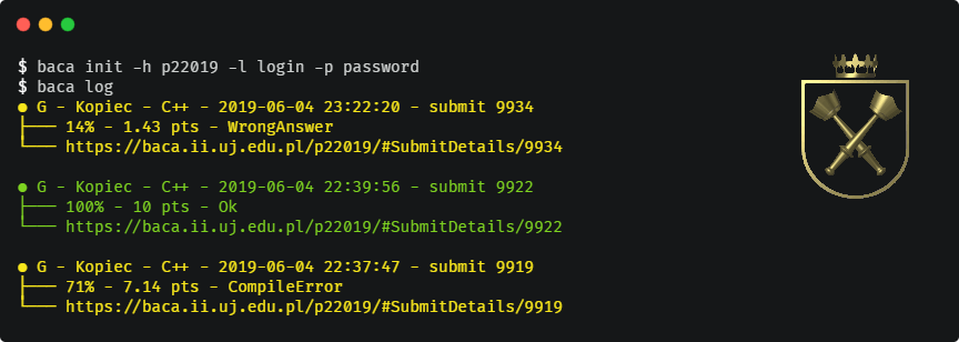$ sudo install baca /usr/local/bin/$ curl -Lo baca.zip https://github.com/hjaremko/baca-cli/releases/download/v0.6.0/baca-0.6.0-linux.zip