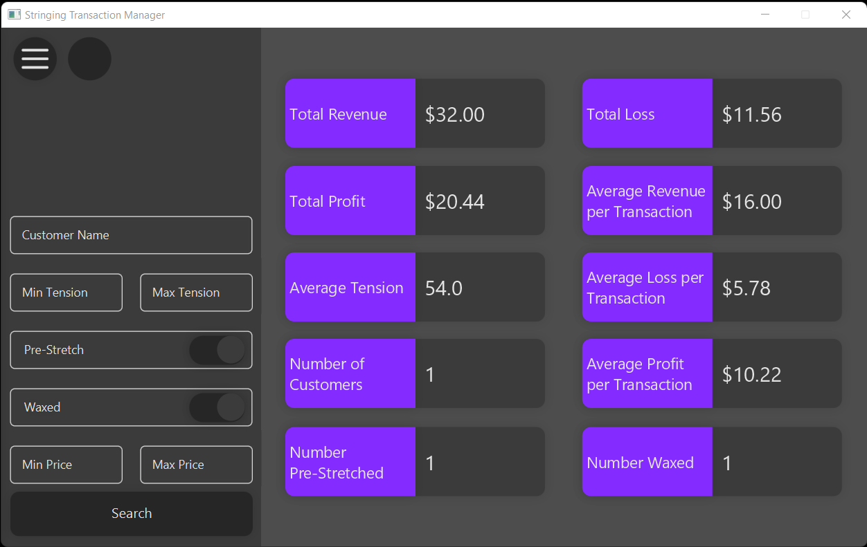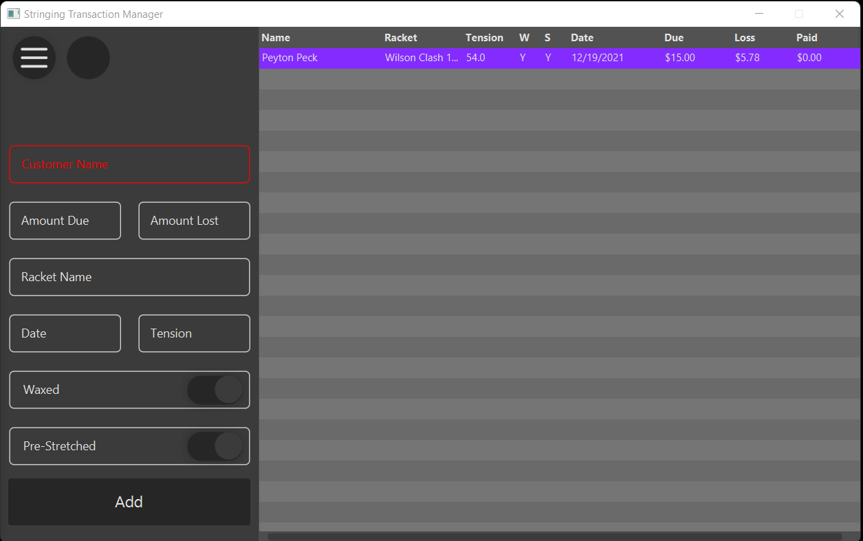 A JavaFX application using BukkitSerializationMock to manage my tennis racket stringing business. Comes with a clean user interface and support for dark and light mode.