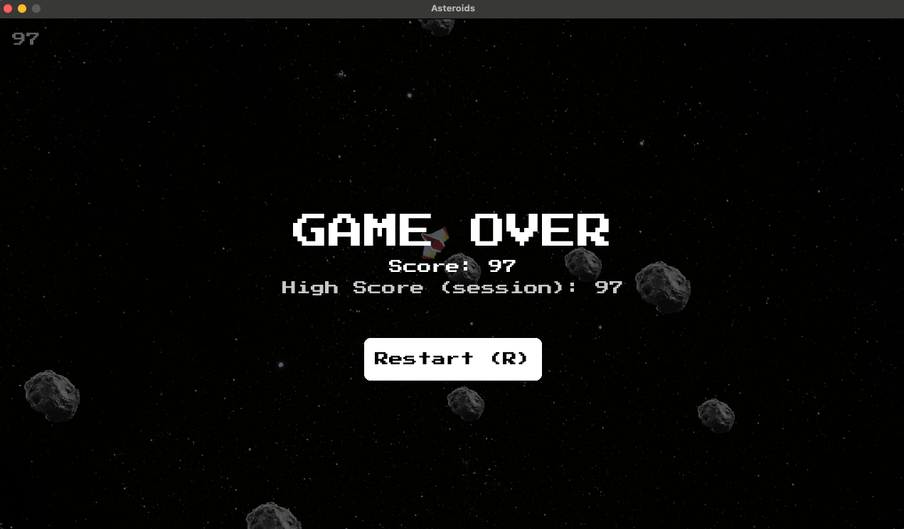Fly your ship, dodge incoming asteroids, and survive as long as you can while your score increases over time.
