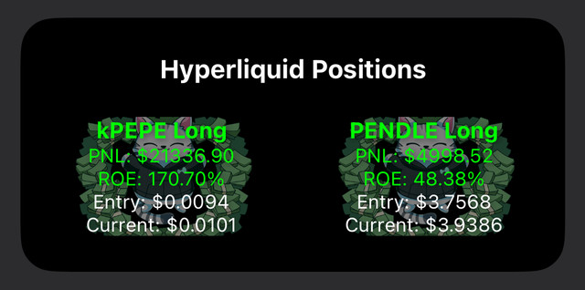 Two iOS Scriptable Widgets that show Hyperliquid positions based on: