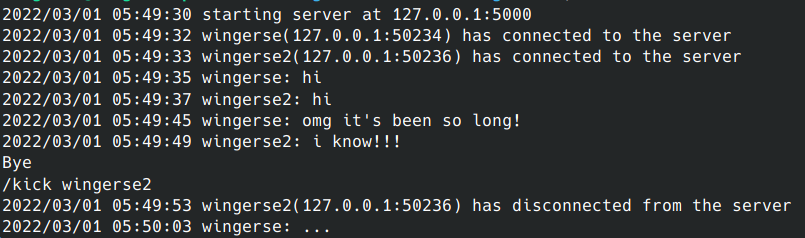 /kick <name>: kick client with namelist: list all online clients/kickall: kick everyone